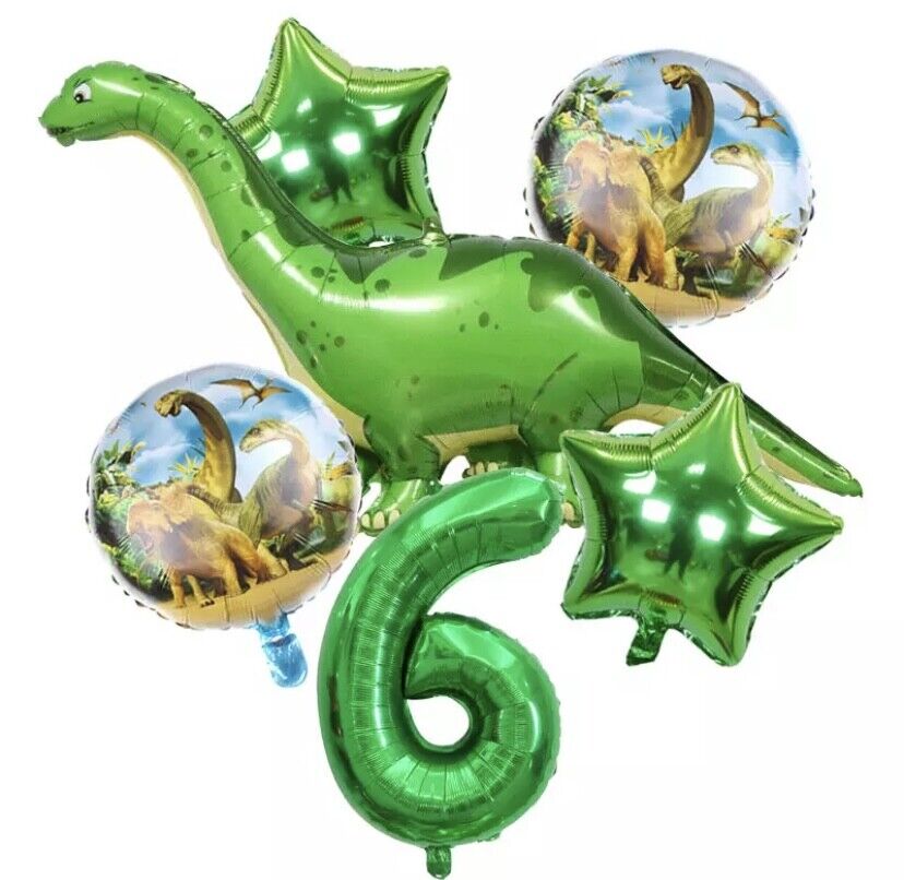 6 pcs/set Green dino Dinosaur Foil Balloons with number Jurassic World Party CHOOSE YOUR NUMBER