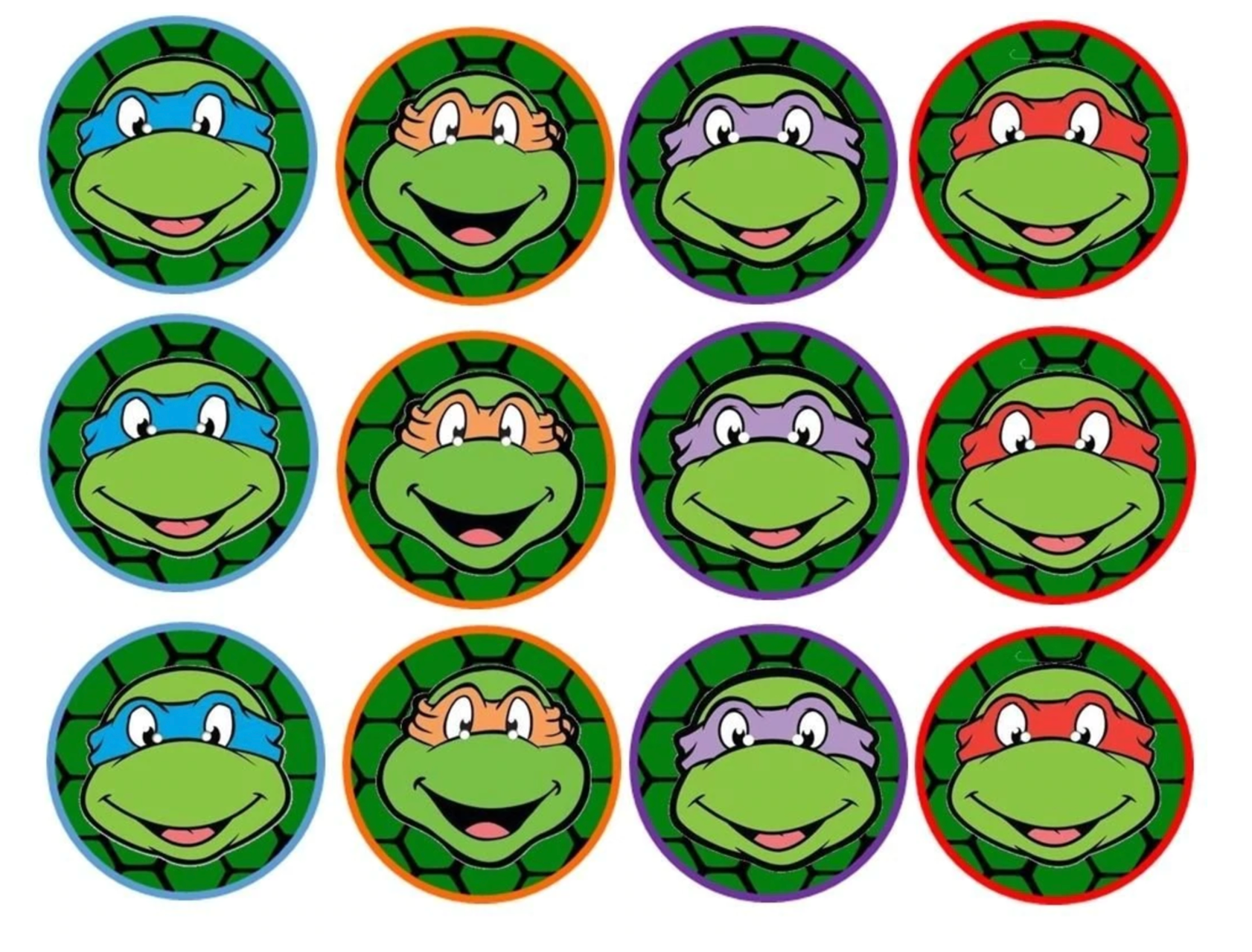 You are buying a set of 12- ninja turtles edible toppers, as shown in the photo