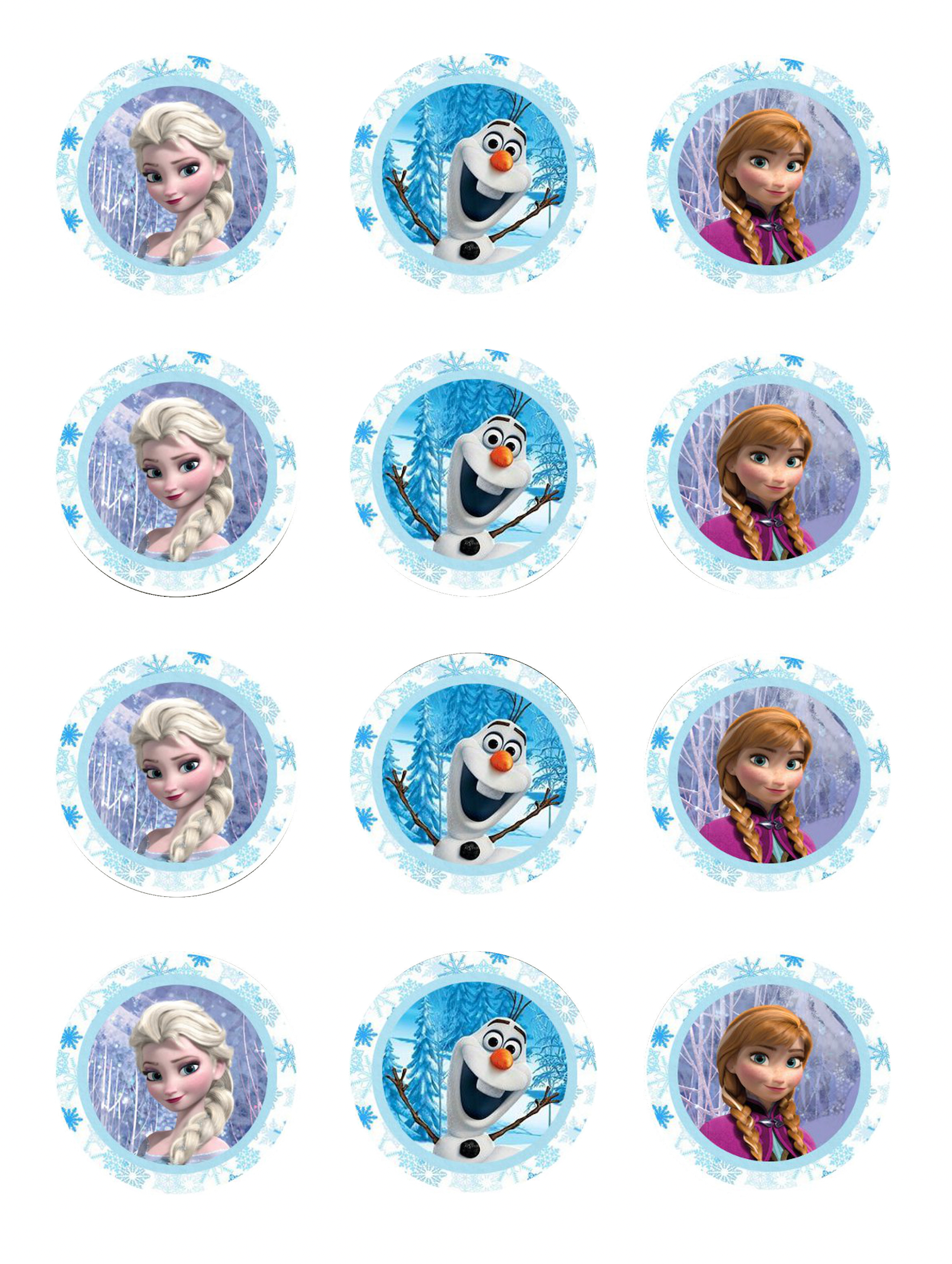 Set of 12 "Frozen" pre cut edible image discs for desserts, drink toppers, choose your size