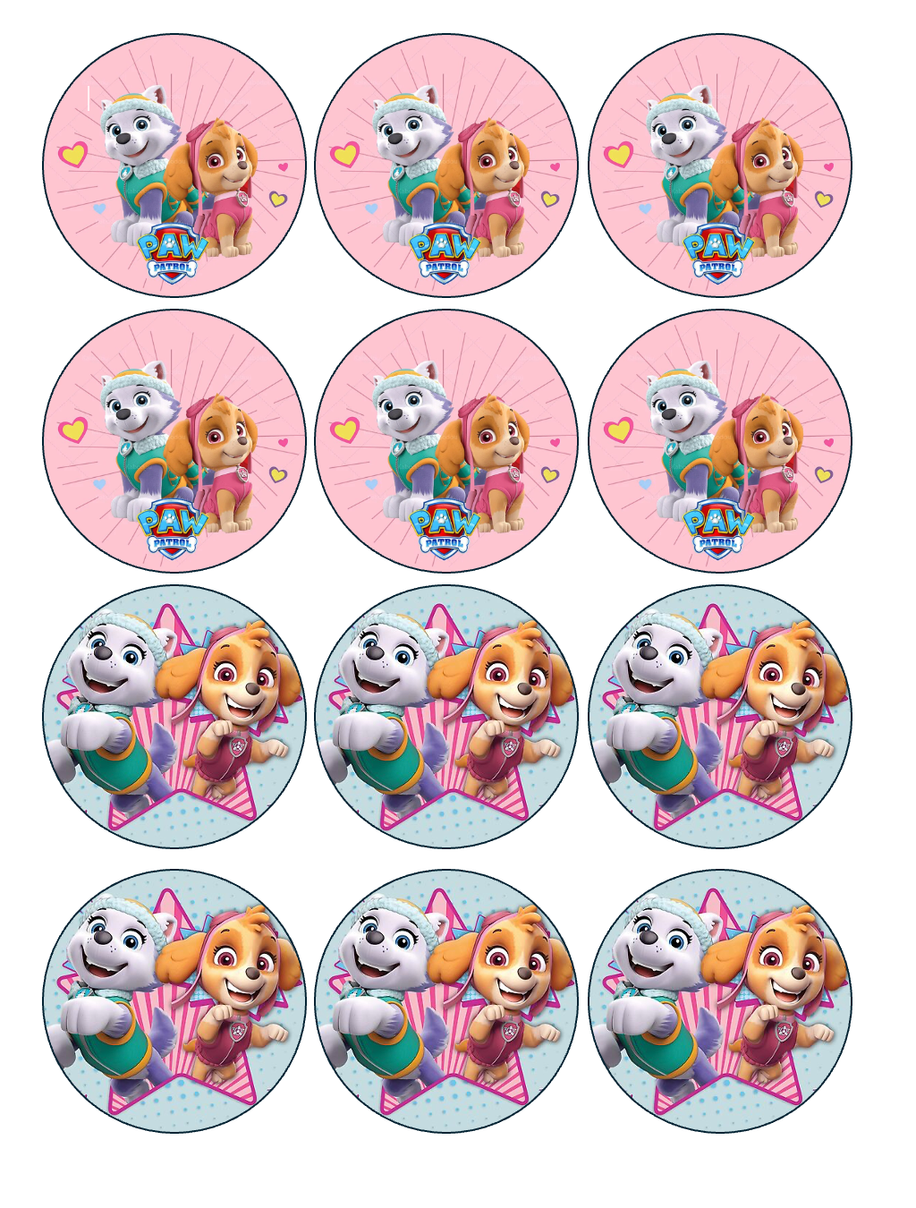 Set of 12 "Paw Patrol" pre cut edible image discs for desserts, drink toppers, choose your size