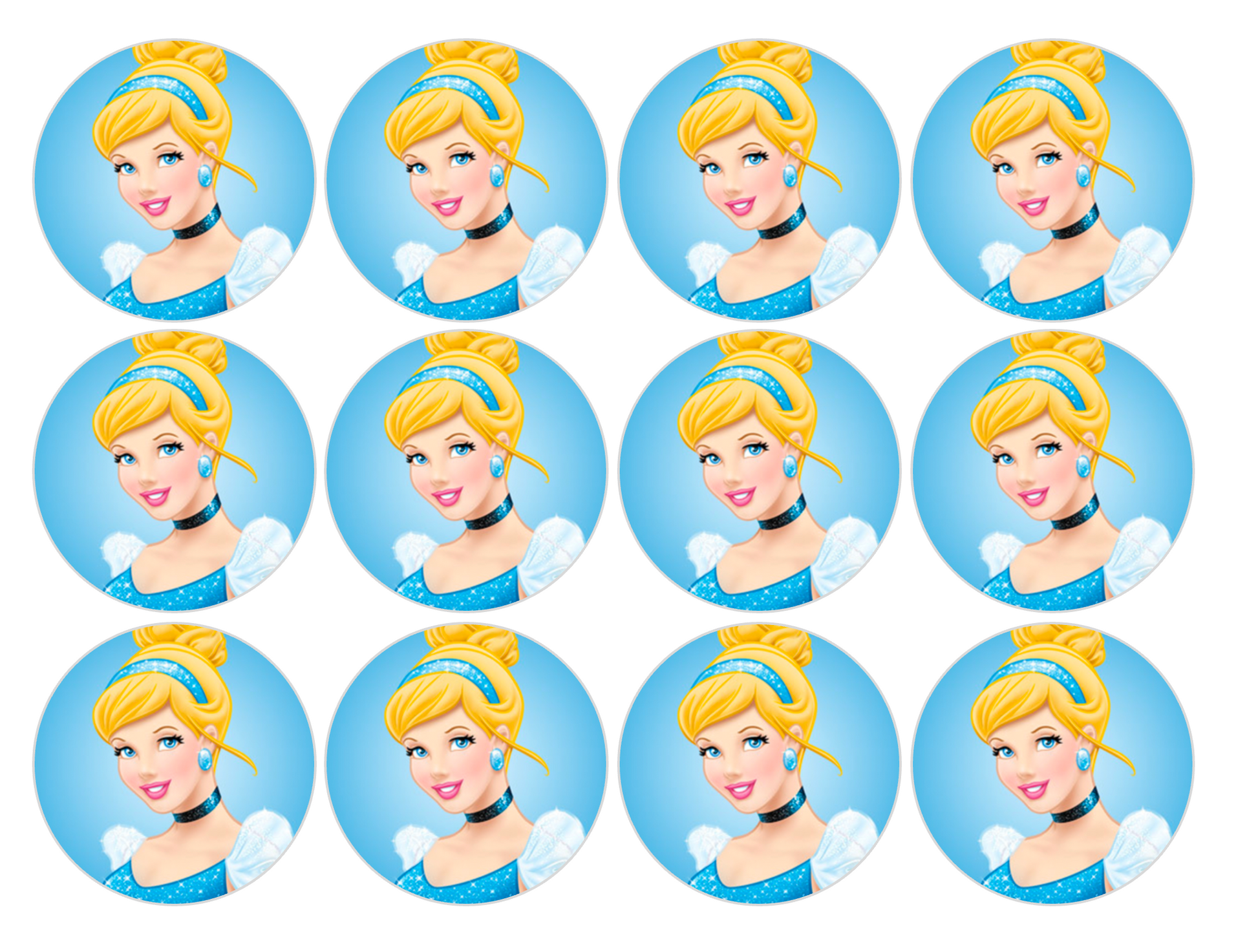 Set of 12 "Cinderella" pre cut edible image discs for desserts, drink toppers, choose your size
