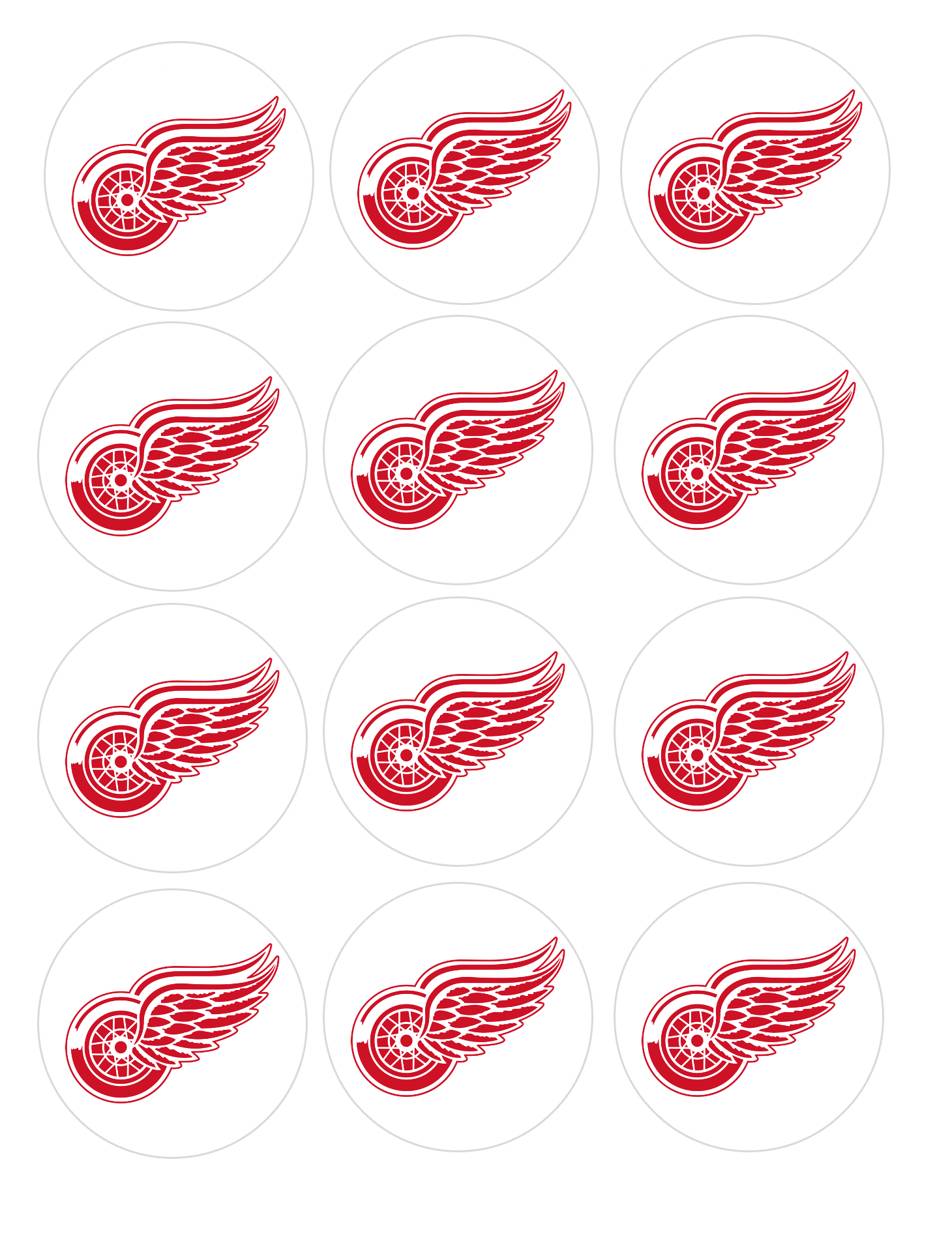 You are buying a set of 12- Red Wings themed edible image discs