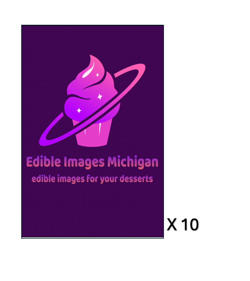 You are buying a set of 10- rectangular edible images, CUSTOM SET with the option to have up to 10 different images per set. You can email the images to be used to edibleimagesmi@gmail.com and I will send a proof after you order before I ship, so stay vigilant with checking your email.