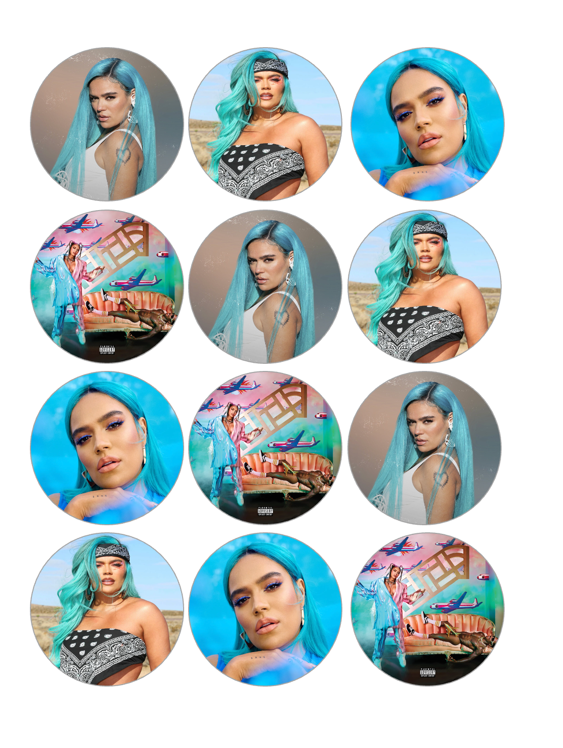 Set of 12 edible image rounds, Karol G , pre cut, many sizes available