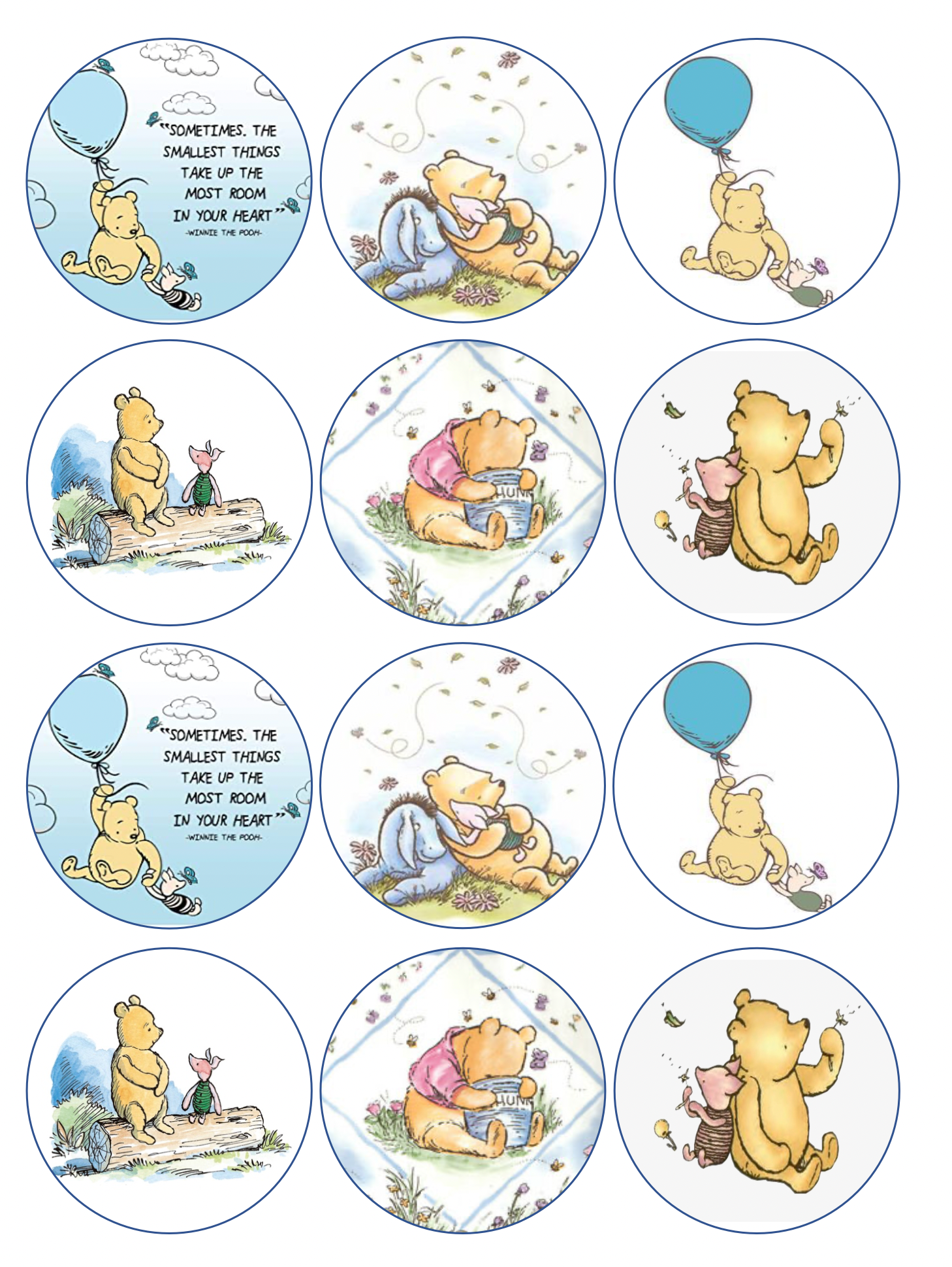 Set of 12 edible images for desserts, drink toppers, pre cut, many sizes available- classic pooh, blue boy baby shower