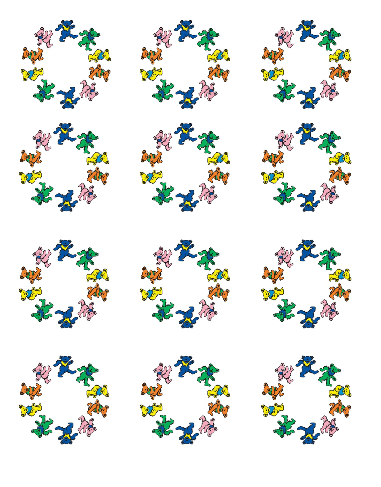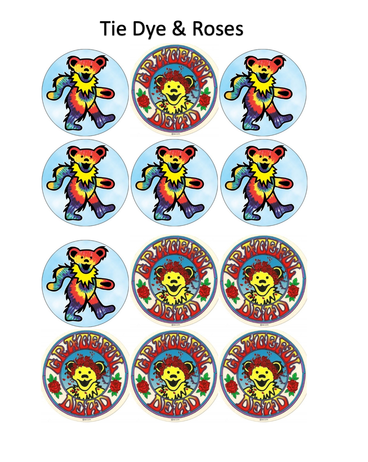 Set of 12 edible images for desserts, drink toppers, pre cut, many sizes available- Grateful Dead dancing bears
