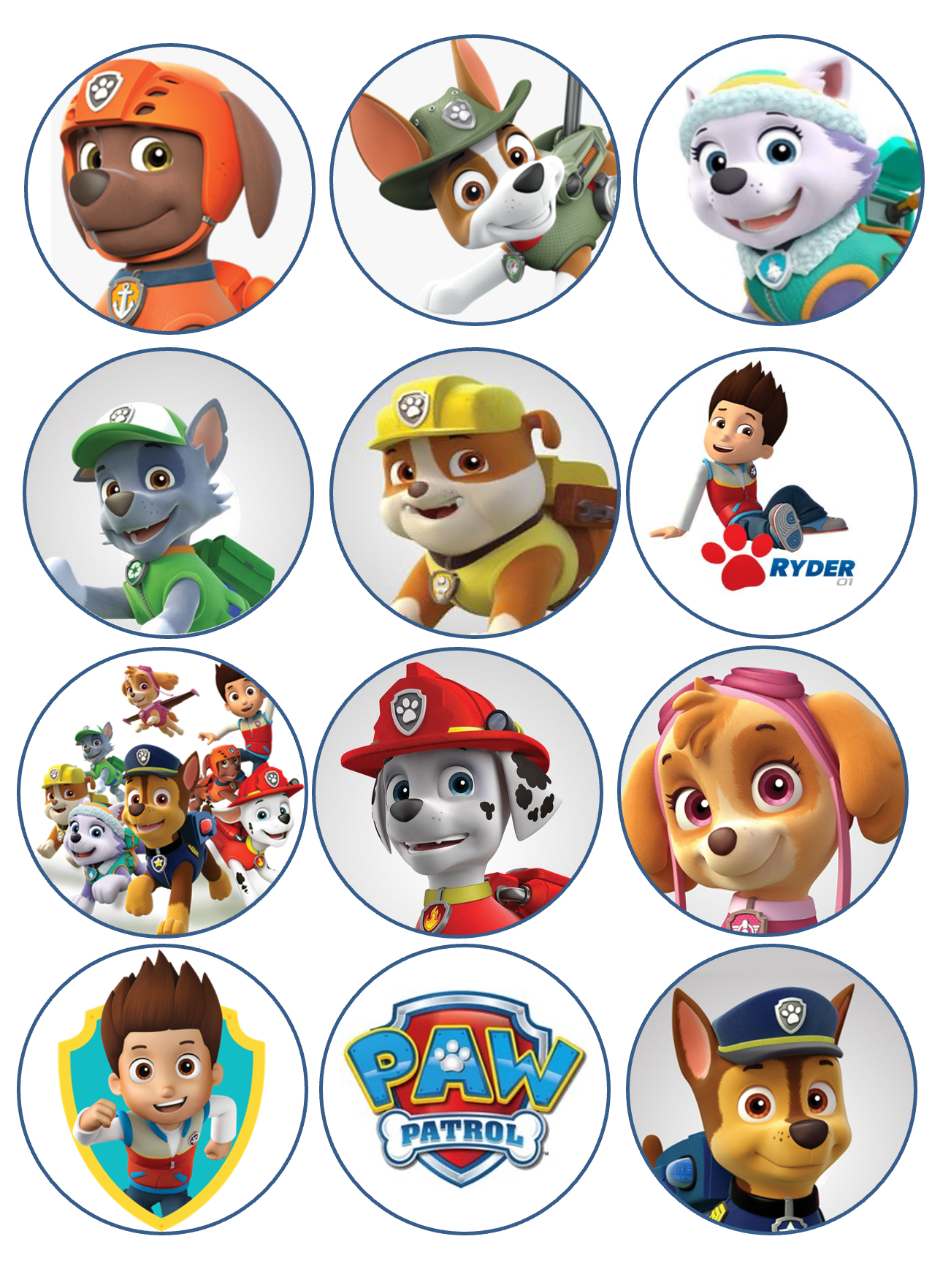 Set of 12 edible images for desserts, drink toppers, pre cut, many sizes available- Paw Patrol