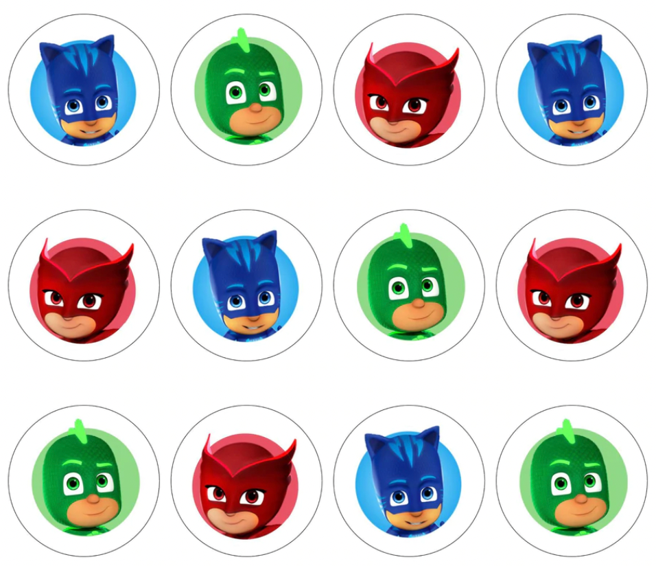 Set of 12 edible images for desserts, drink toppers, pre cut, many sizes available- PJ masks
