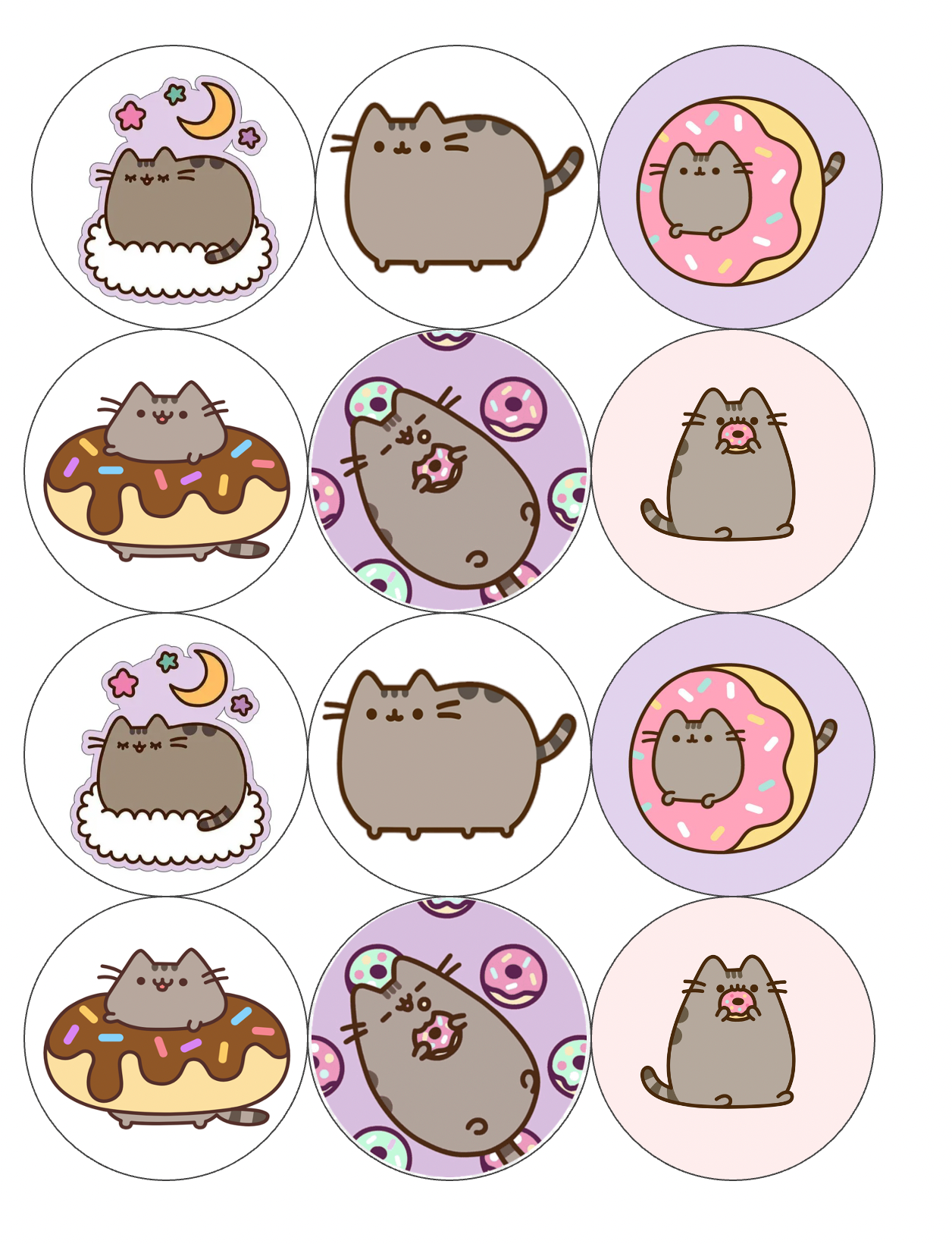 Set of 12 edible images for desserts, drink toppers, pre cut, many sizes available- Pusheen
