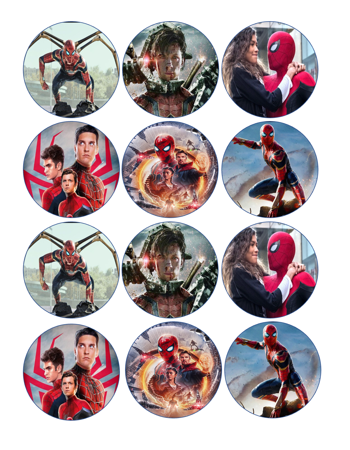 Set of 12 edible images for desserts, drink toppers, pre cut, many sizes available- spiderman