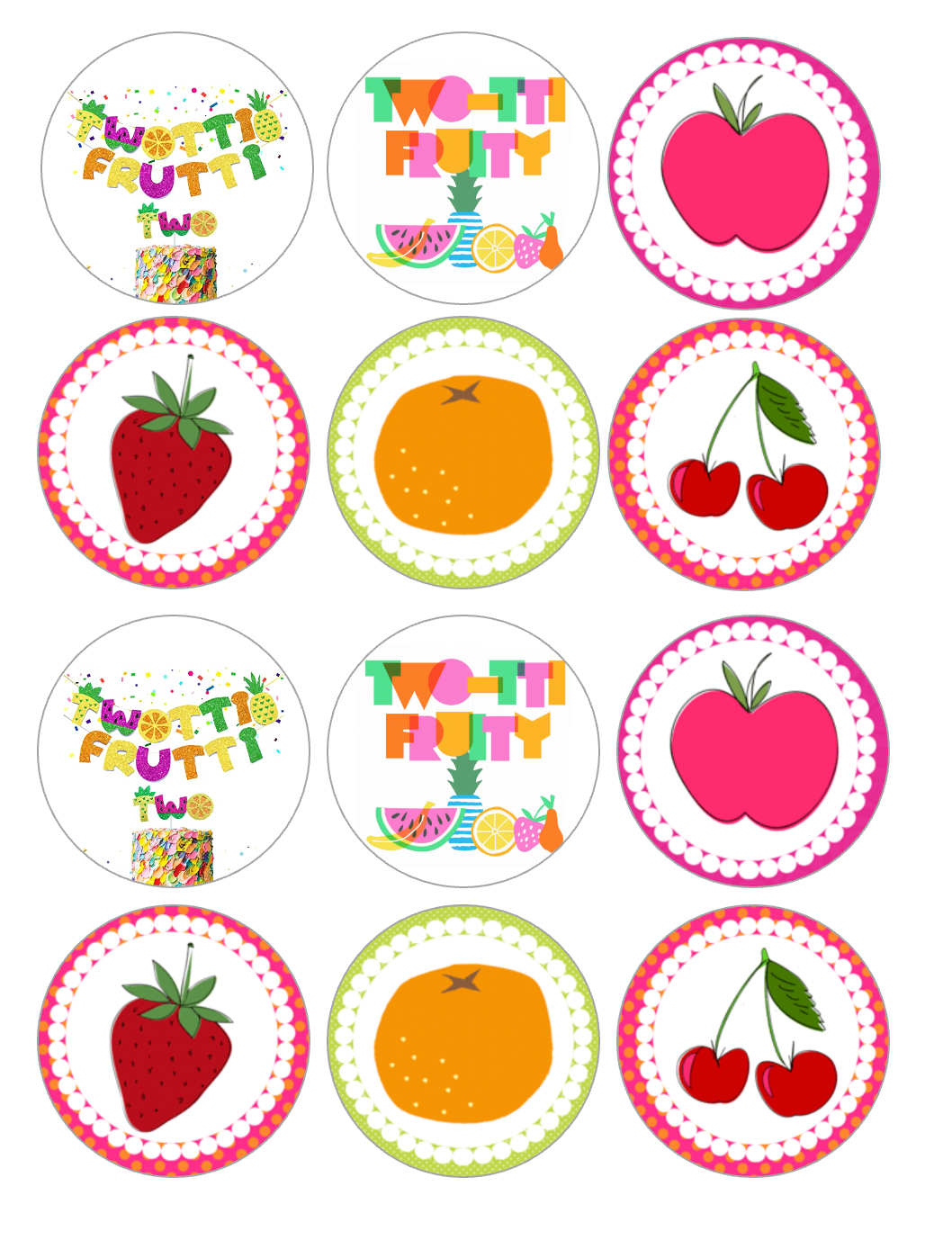 Set of 12 edible images for desserts, drink toppers, pre cut, many sizes available- Twotti Frutti, 2nd Birthday