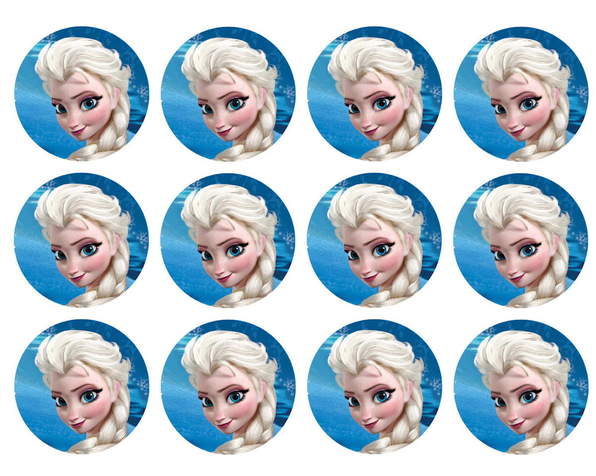 Set of 12 "Elsa Frozen" pre cut edible image discs for desserts, drink toppers, choose your size
