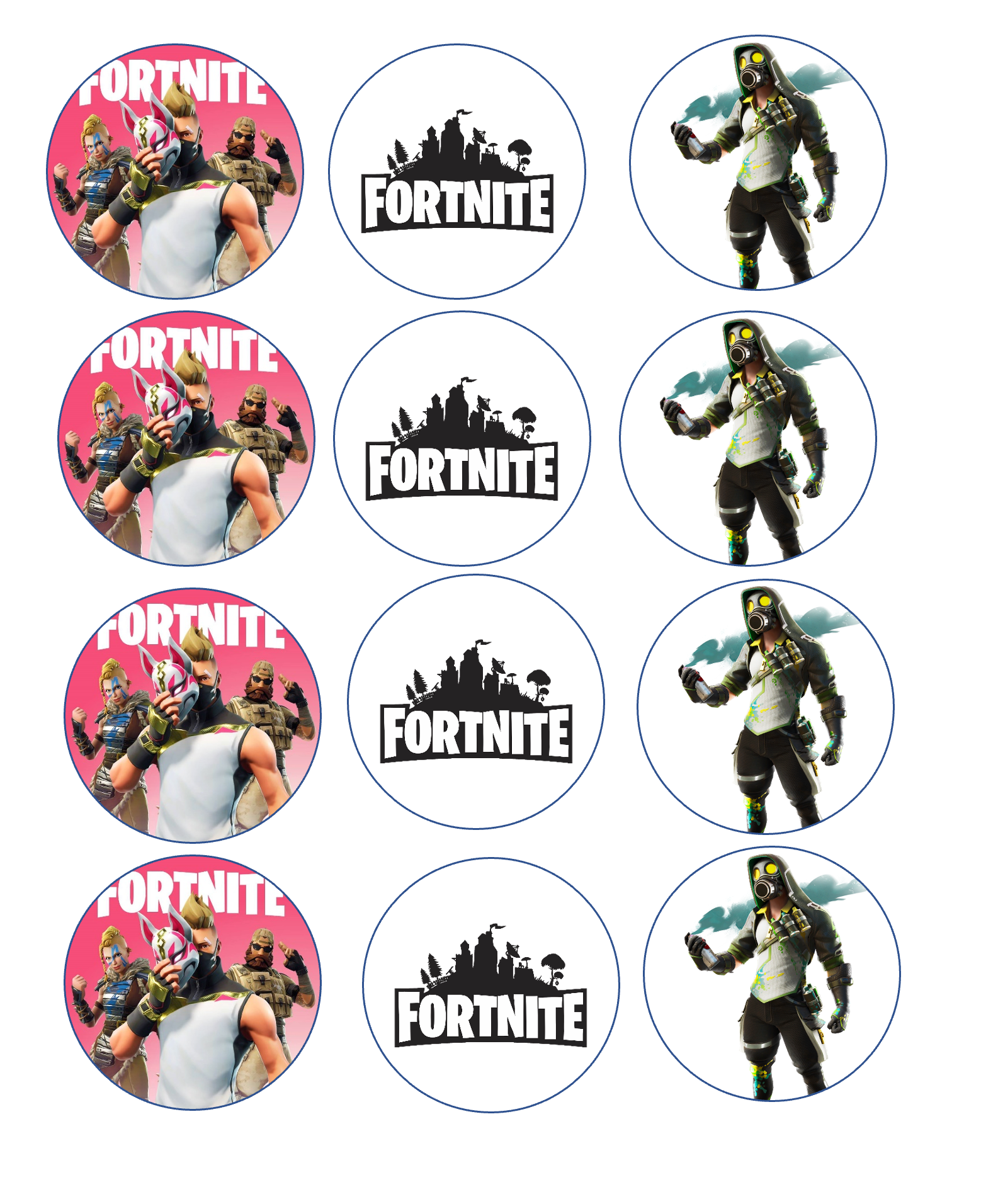 Set of 12 "Fortnite" pre cut edible image discs for desserts, drink toppers, choose your size