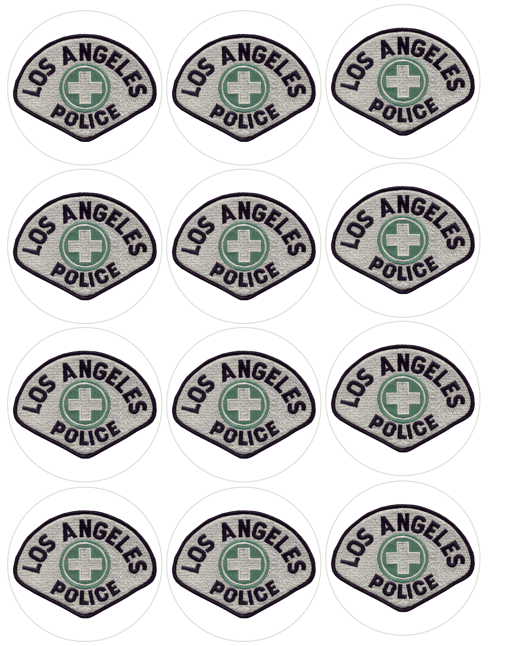 Set of 12 "LA Los Angeles Police Department" pre cut edible image discs for desserts, choose your size