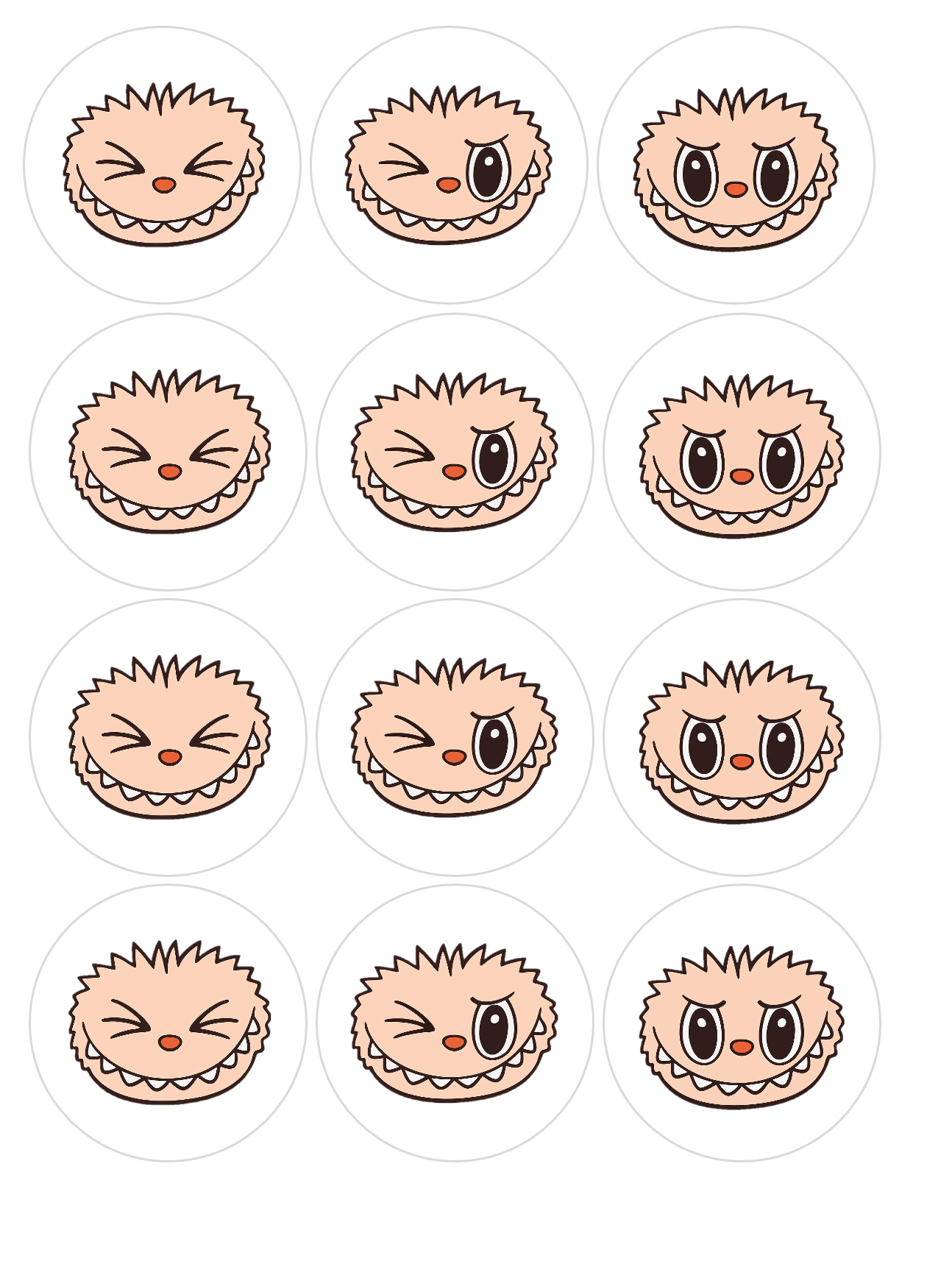 Set of 12 Labubu Faces pre cut edible image discs for desserts, choose your size