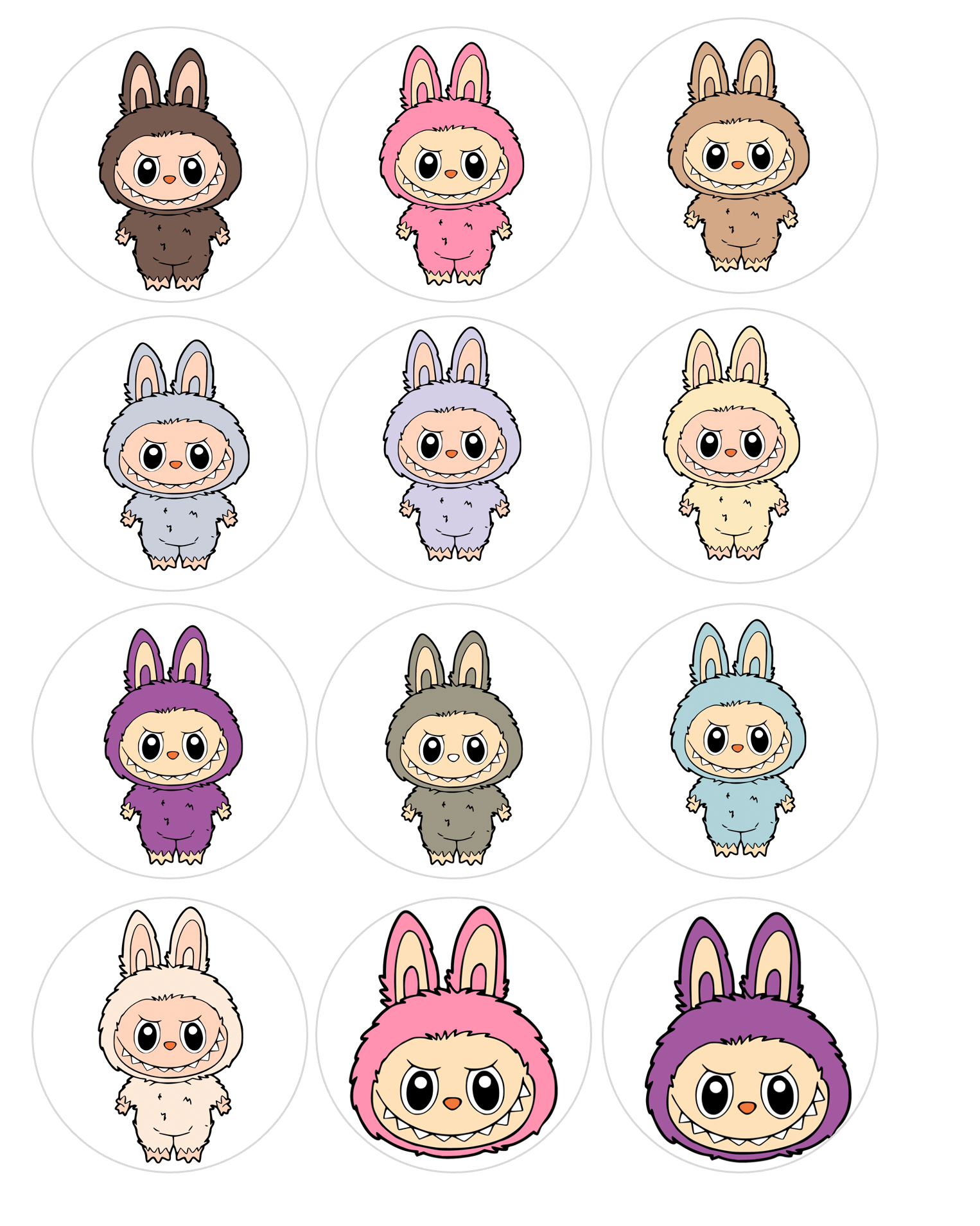 Set of 12 Labubu pre cut edible image discs for desserts, choose your size