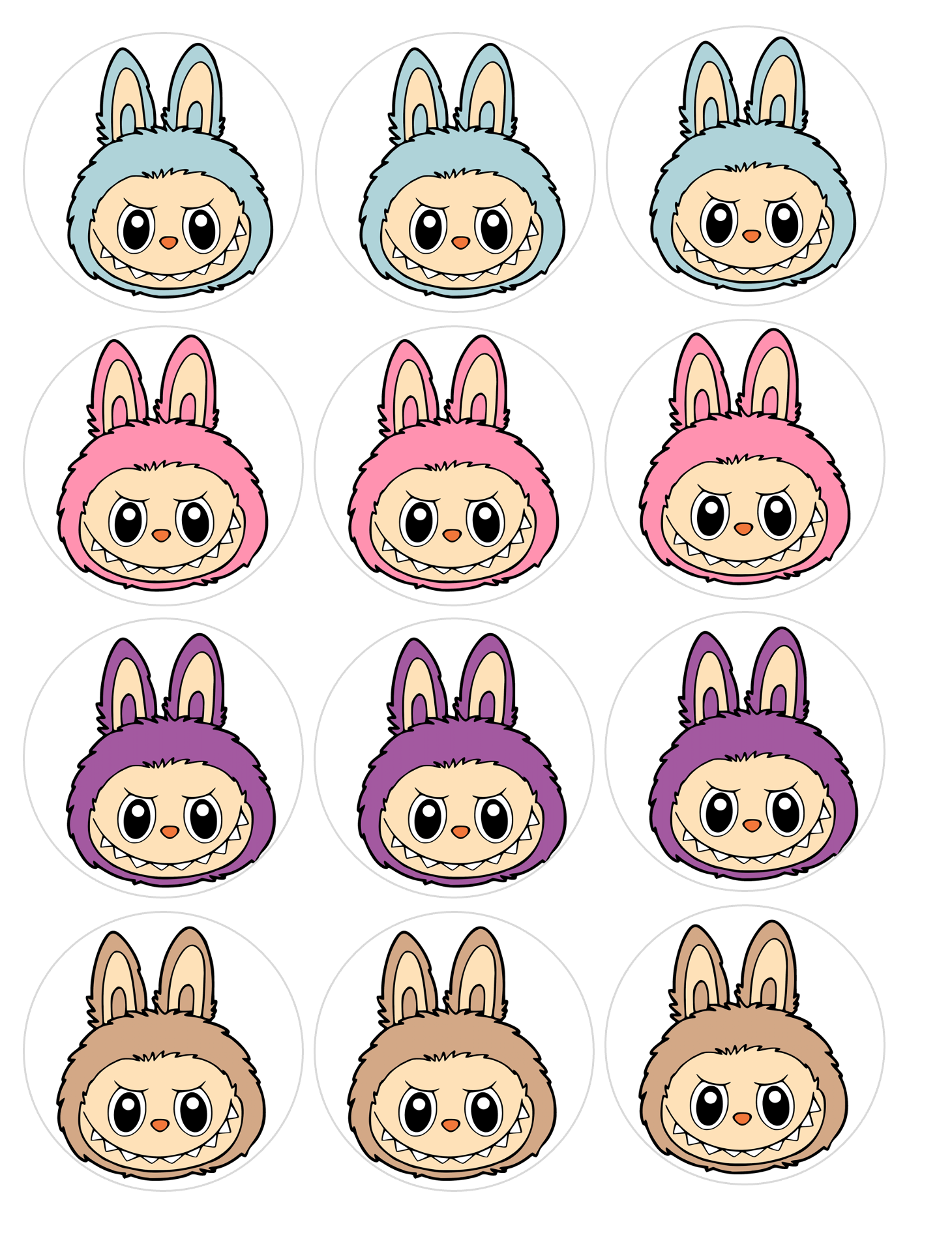 Set of 12 Labubu pre cut edible image discs for desserts, choose your size