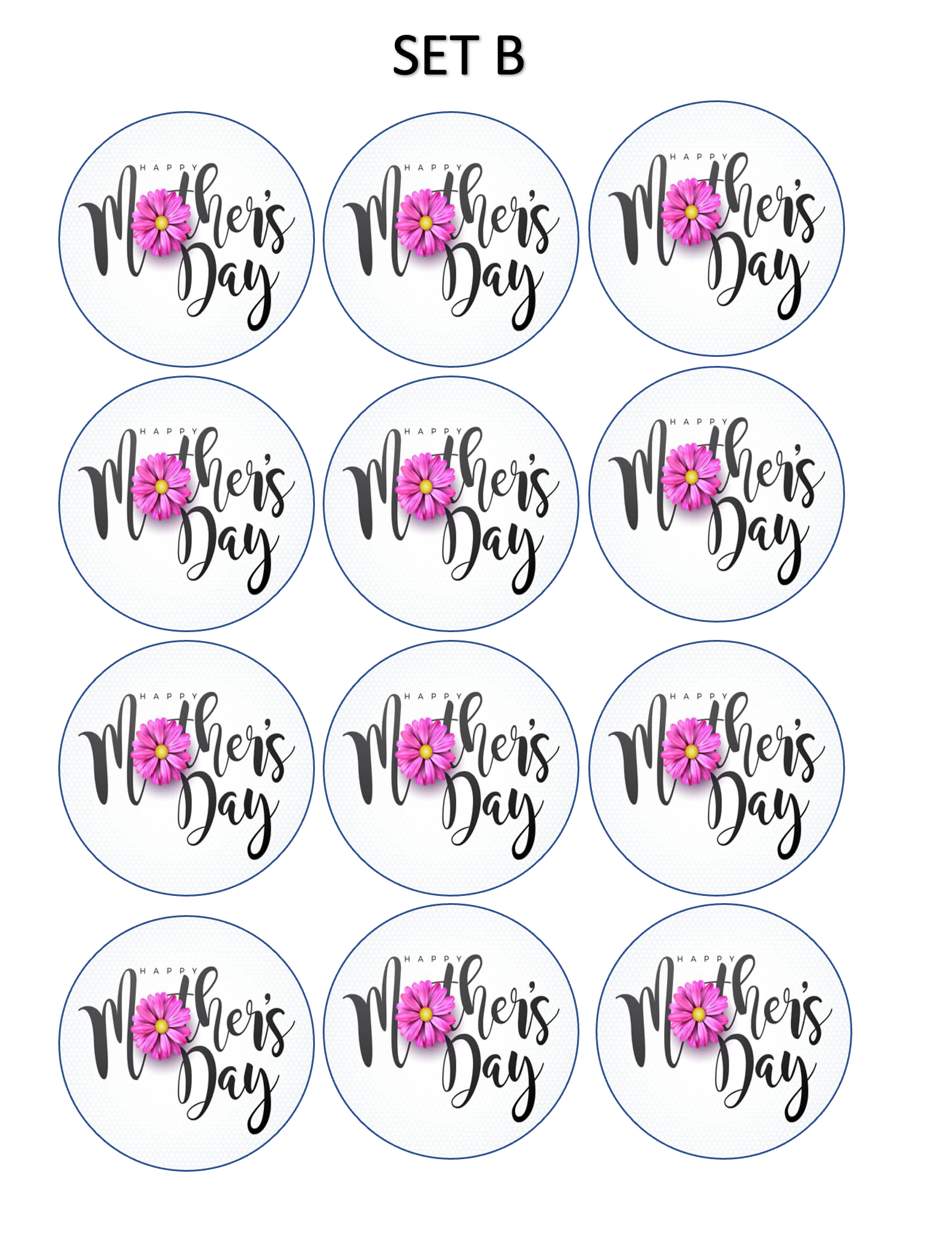 Set of 12 "Mothers Day" pre cut edible image rounds, many sizes to choose from