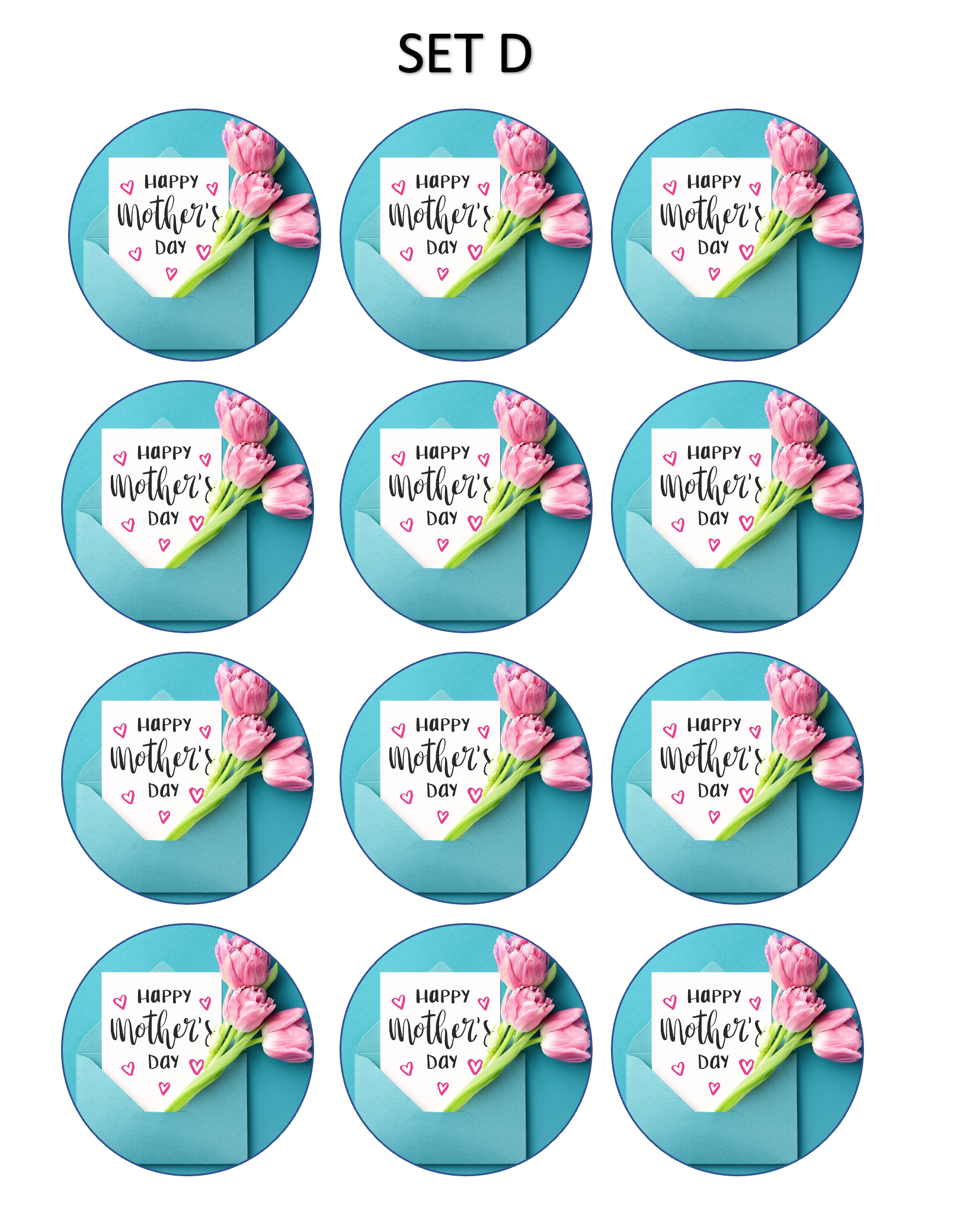 Set of 12 "Mothers Day" pre cut edible image rounds, many sizes to choose from