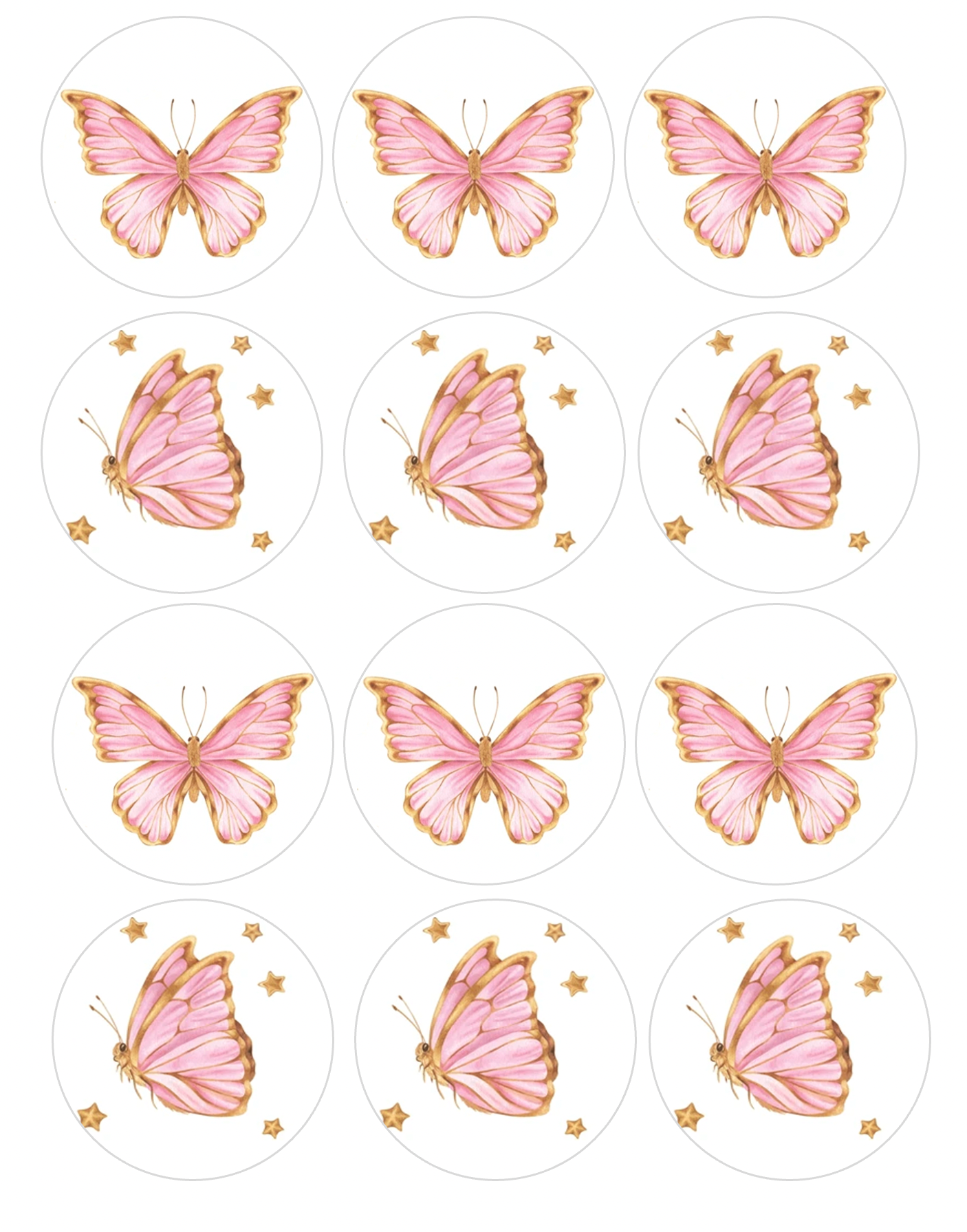 You are buying a set of 12- pink and gold butterfly themed edible image rounds