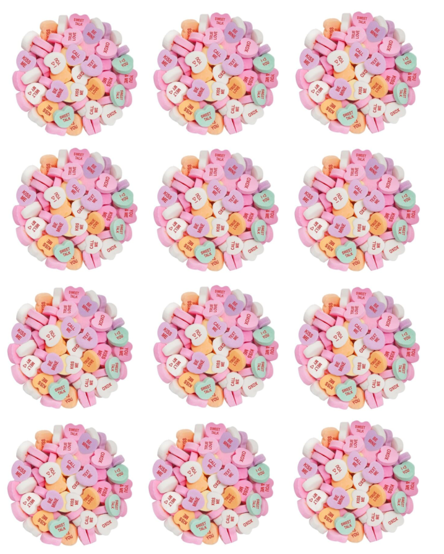 Set of 12 pre cut edible images for desserts, drink toppers, choose your size- Conversation Hearts, Valentines Day