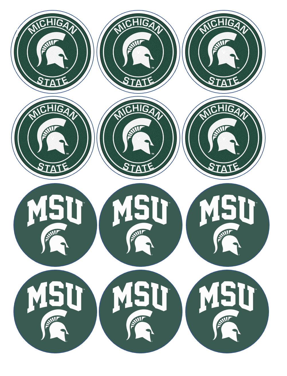 Set of 12 pre cut edible images for desserts, drink toppers, choose your size- MSU Michigan state university