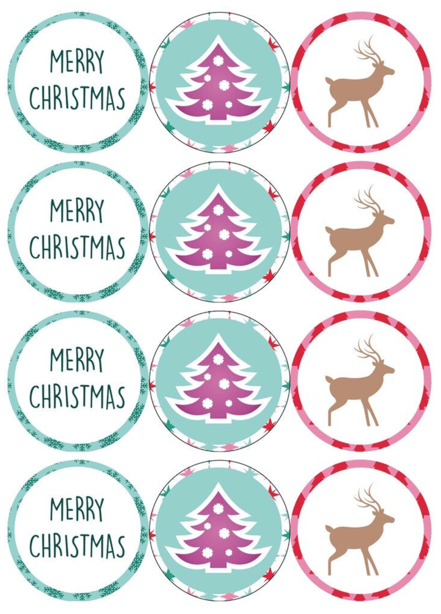 set of 12 pre cut edible images for desserts, drink toppers, choose your size- Pink Christmas, Happy holidays
