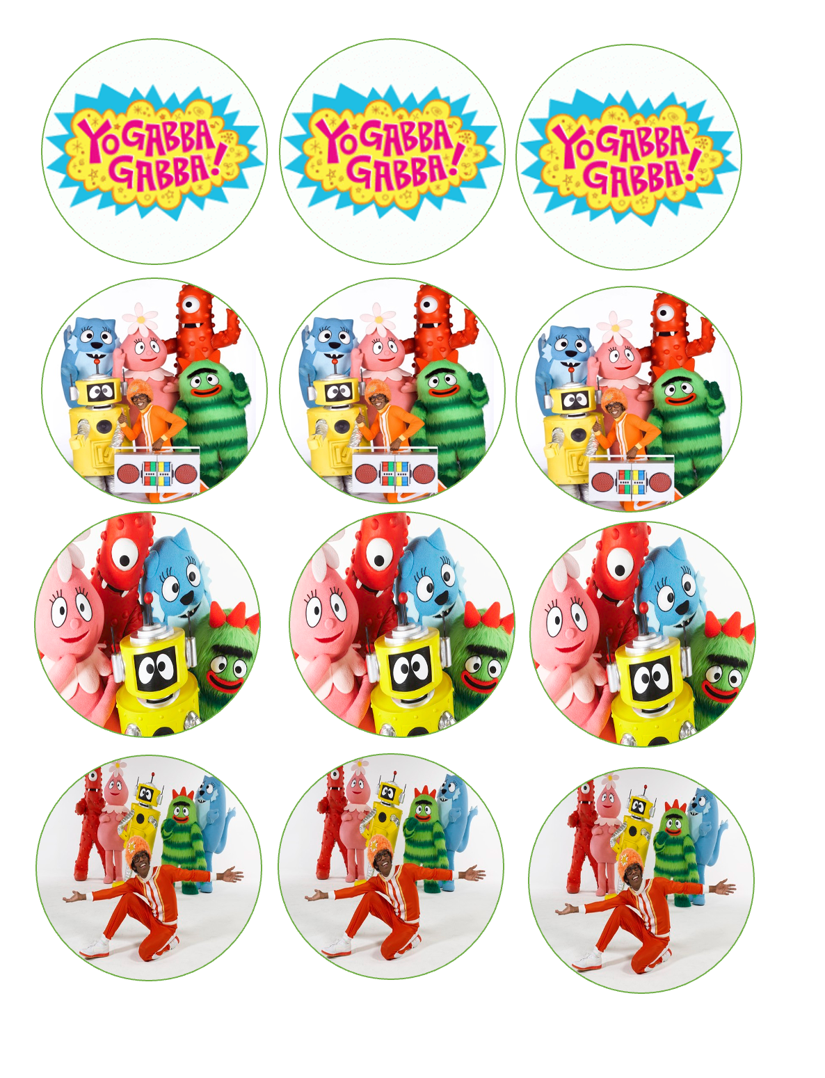 Set of 12 pre cut edible images for desserts, drink toppers, choose your size- Yo gabba gabba