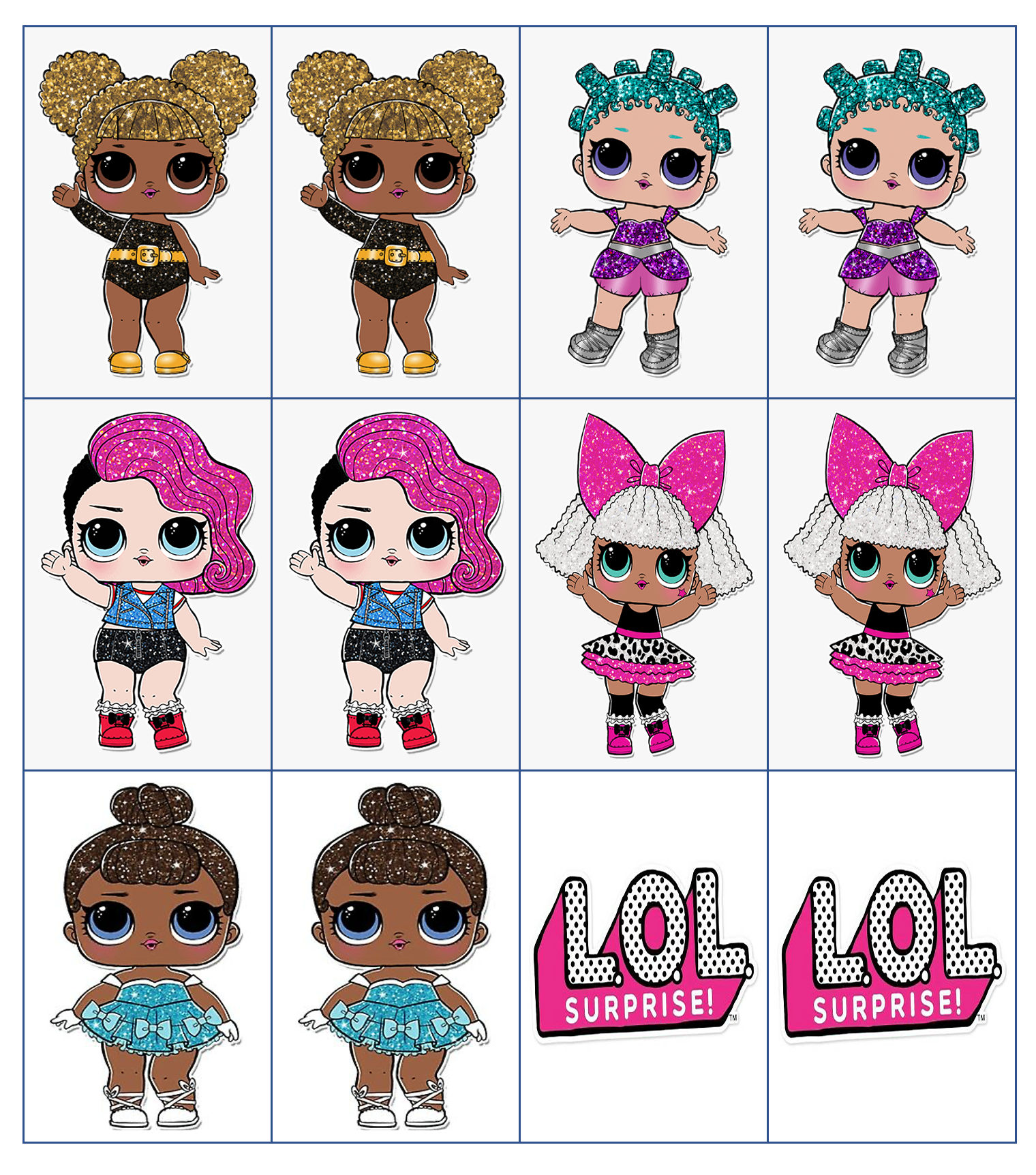 You are buying a set of 12- rectangle shaped edible LOL dolls toppers, good for cookies and rice Krispy treats