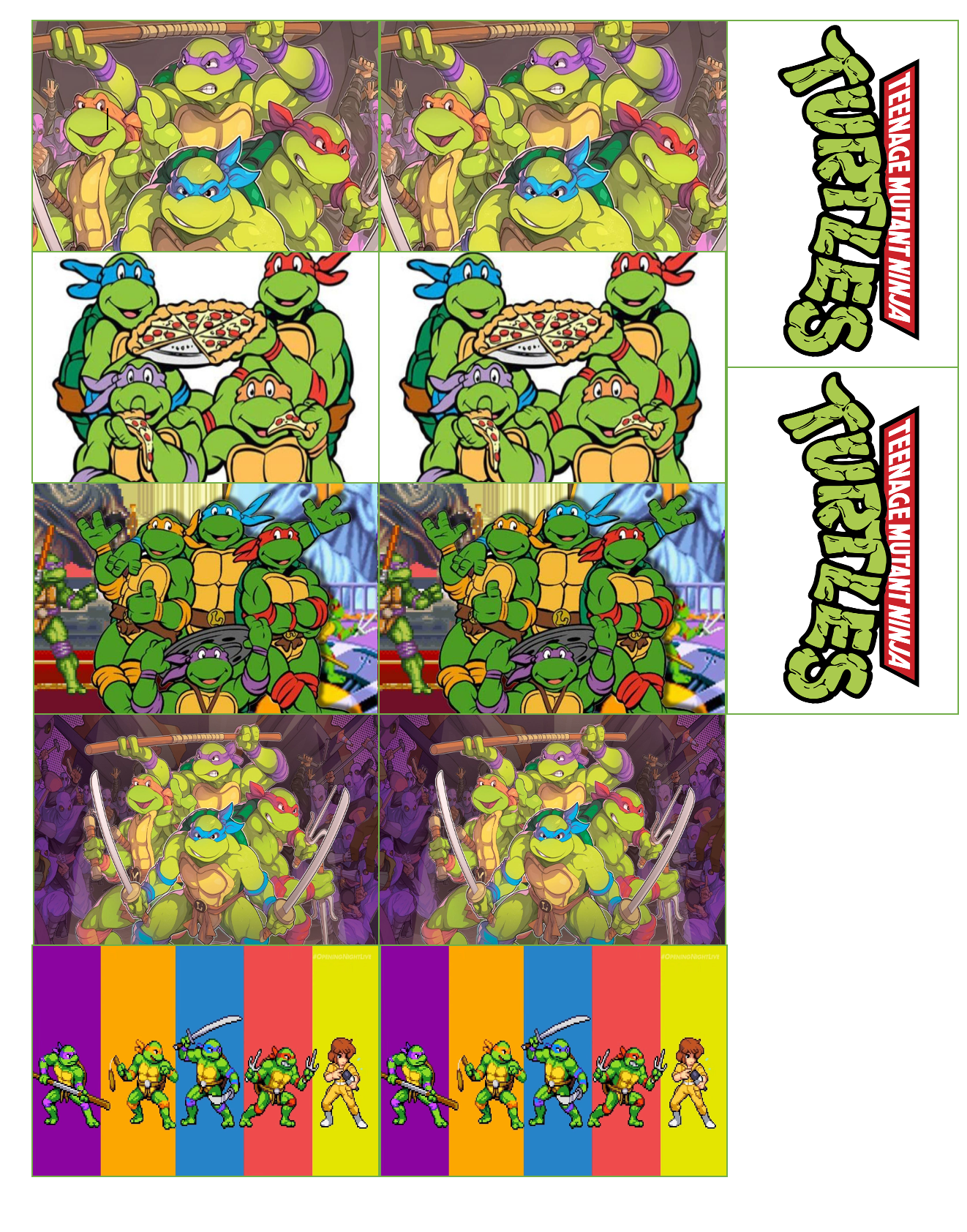 Set of 12 pre cut rectangle edible images for Rice Krispies, cookies, choose your size- TMNT Ninja Turtles
