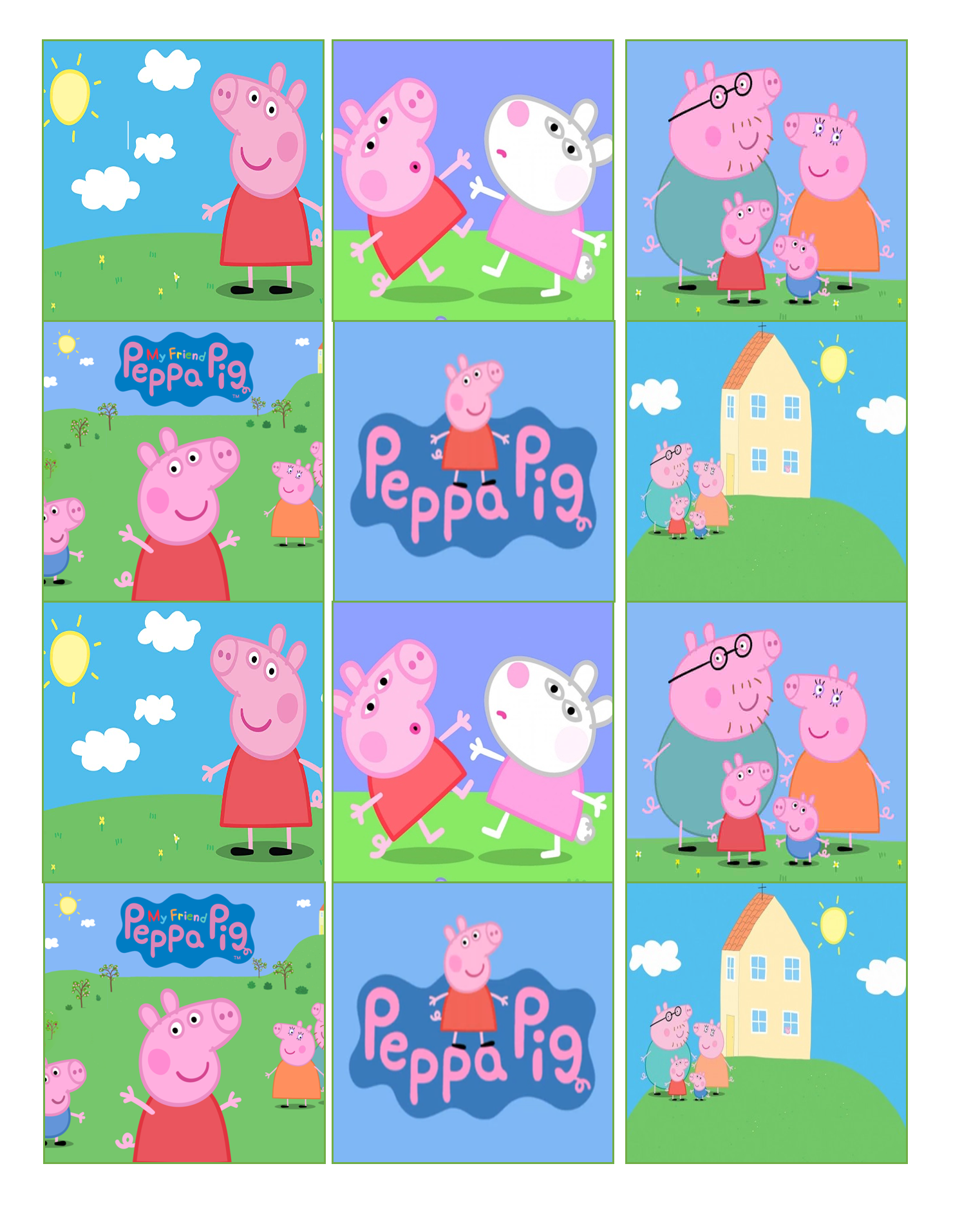 set of 12 pre cut square edible images for desserts, choose your size- Peppa pig