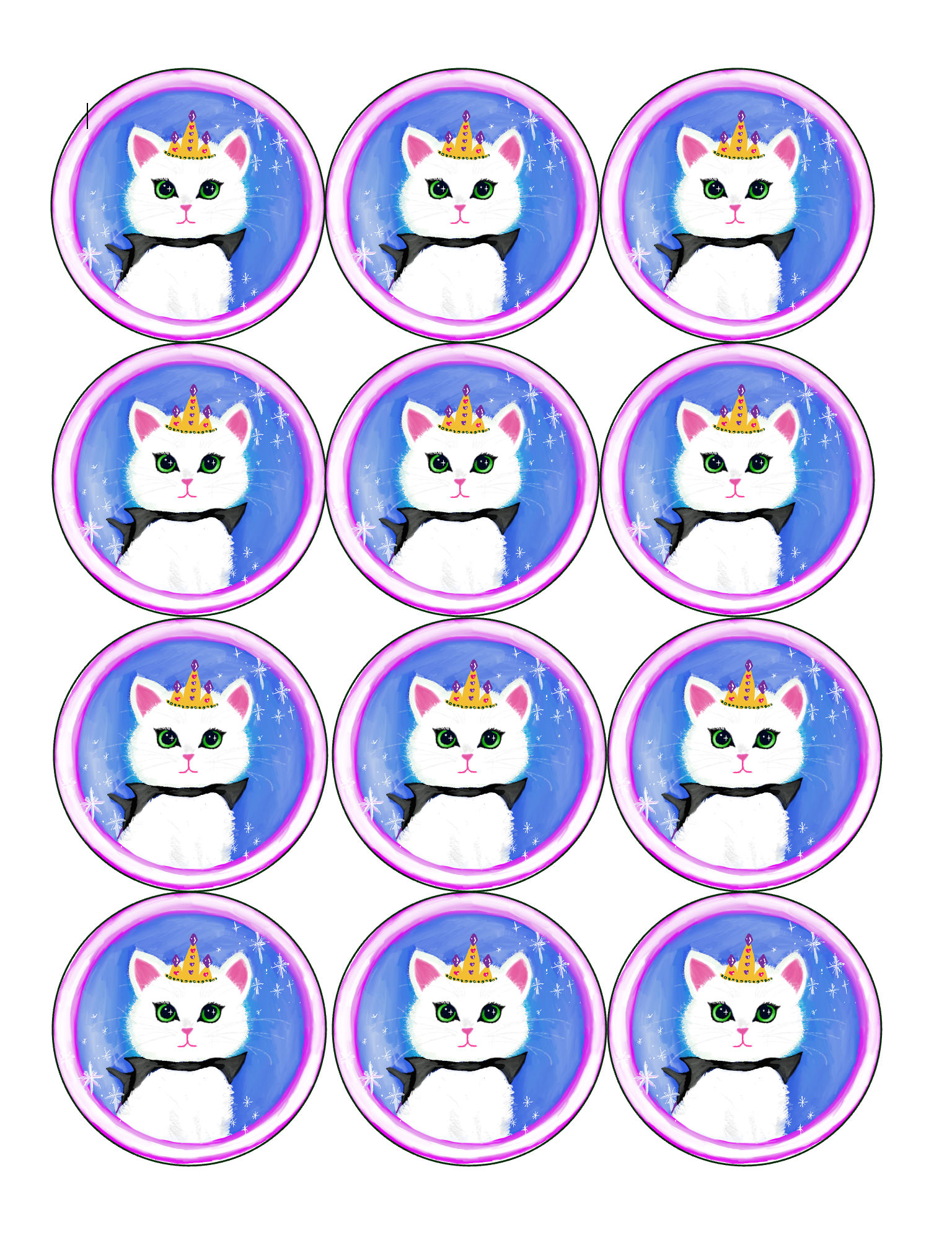 You are buying a set of 12- Princess Kitten themed edible image discs