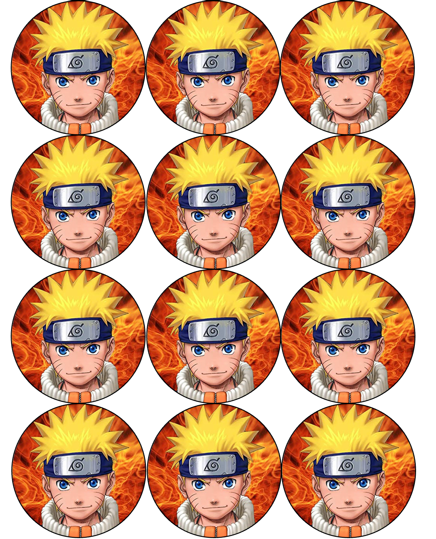Set of 12 "Naruto" pre cut edible image discs for desserts, drink toppers, choose your size