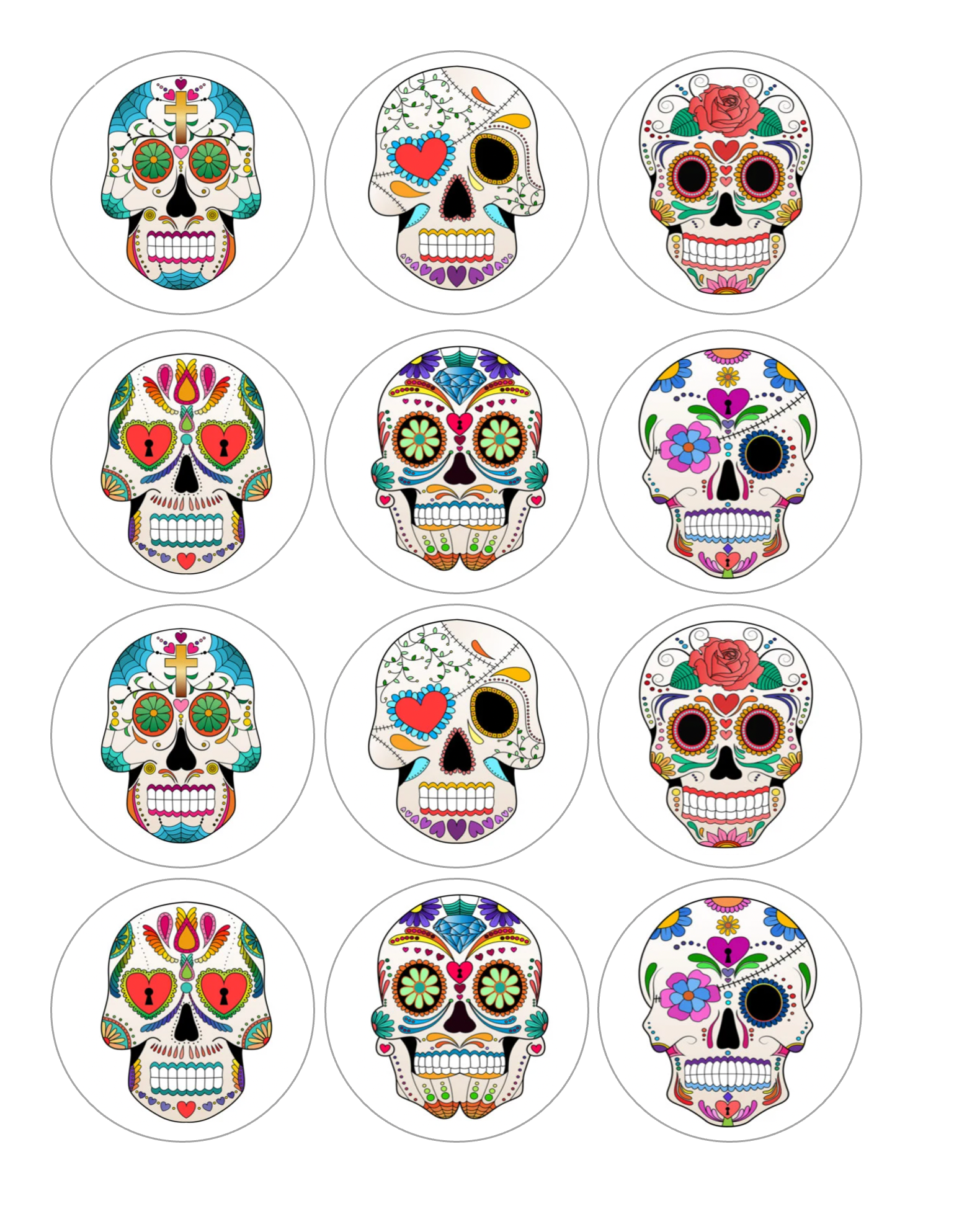You are buying a set of 12- sugar skull themed edible image discs