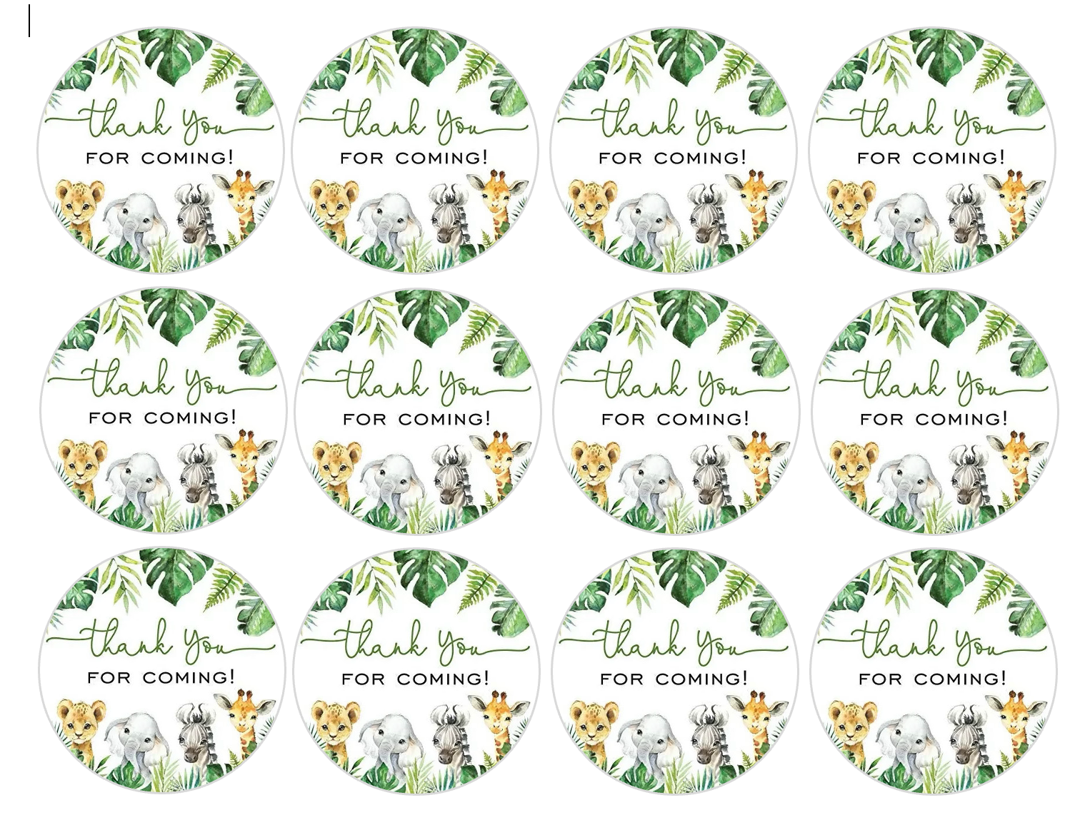 You are buying a set of 12- Thank you for coming wild life themed edible image rounds