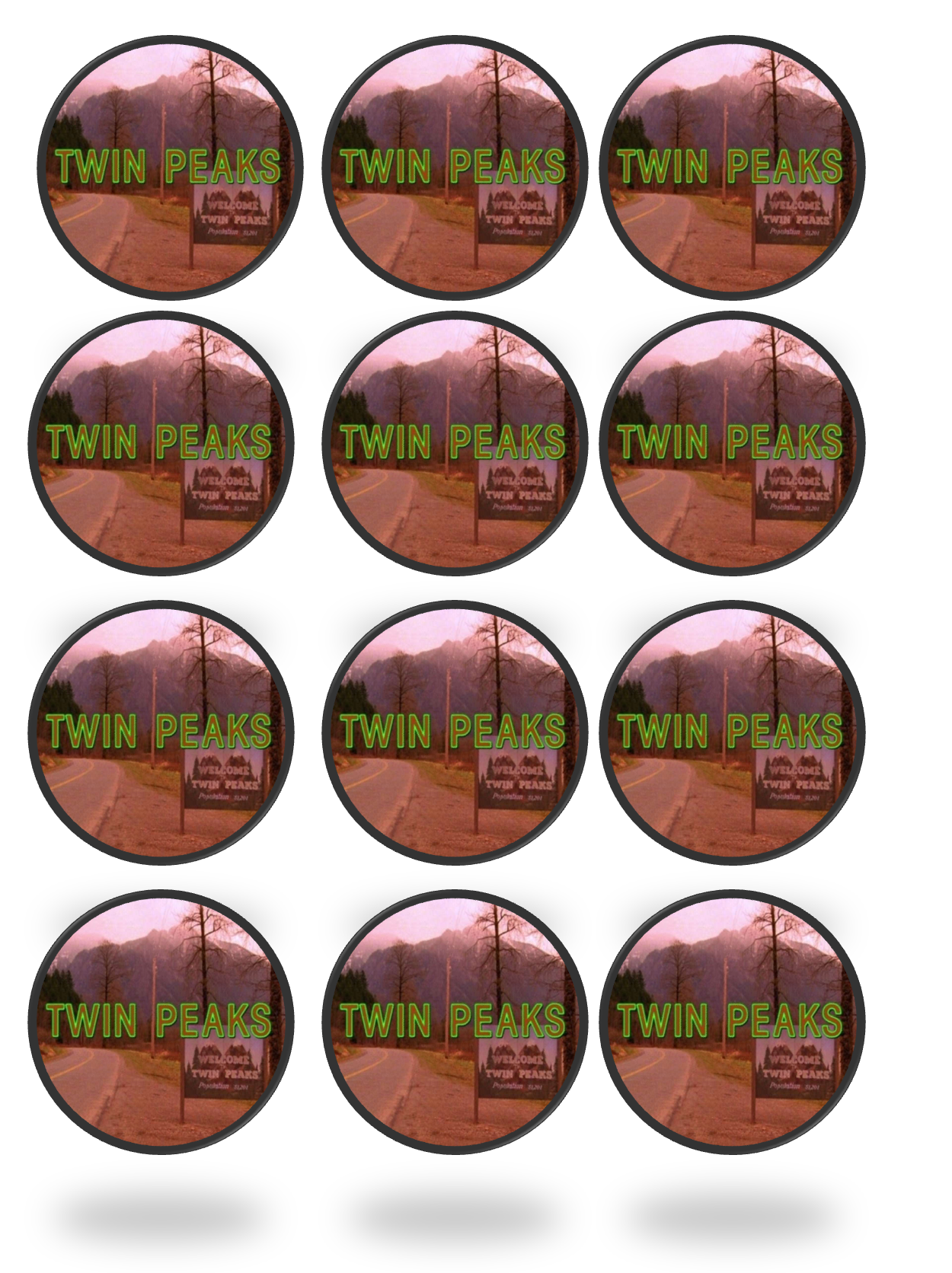 Set of 12 "Twin Peaks show" pre cut edible image discs for desserts, drink toppers, choose your size