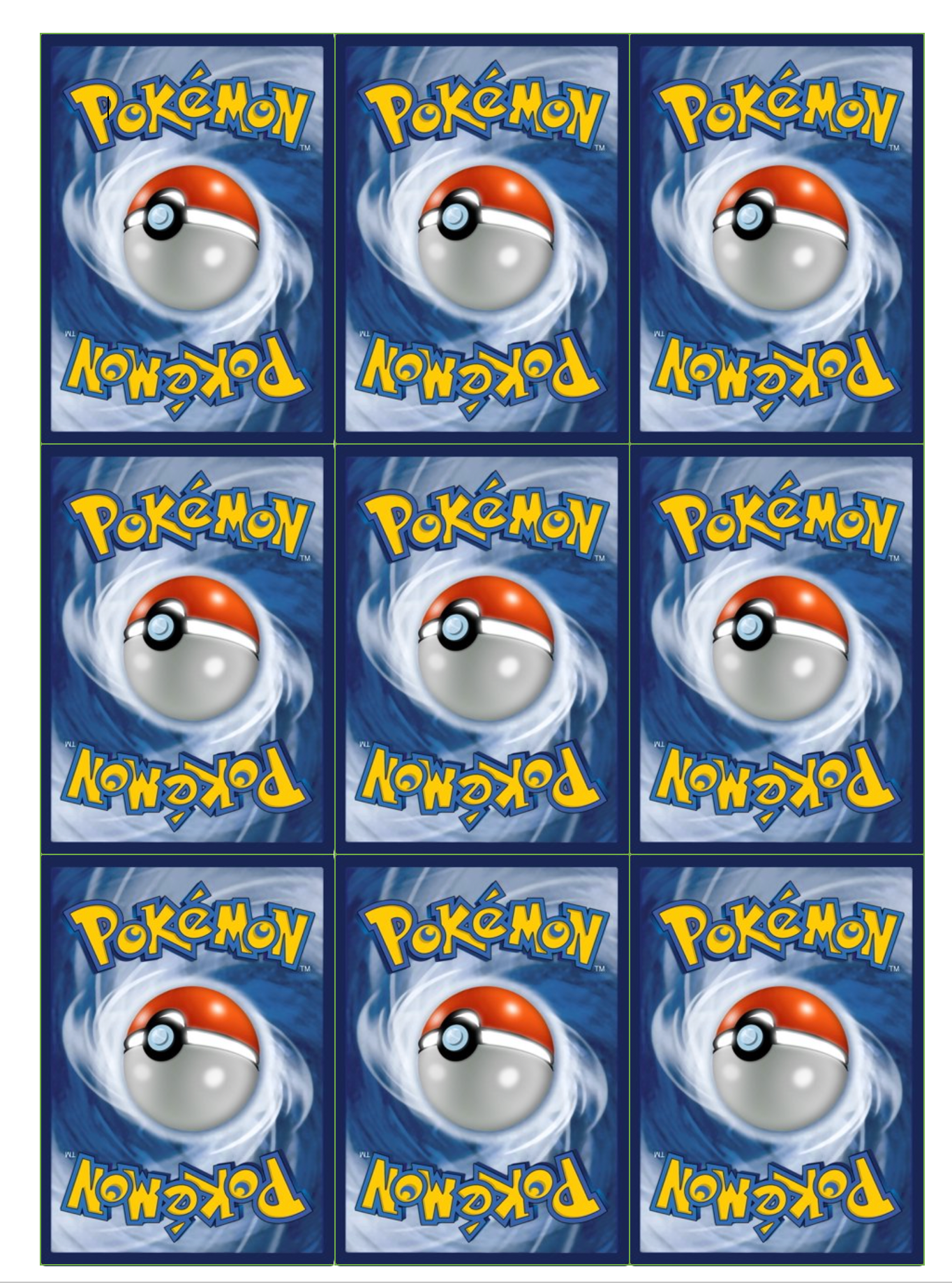 Set of 9 edible images for desserts, pre cut, 2x3" or 2.5x3.5" rectangles- back of pokemon cards